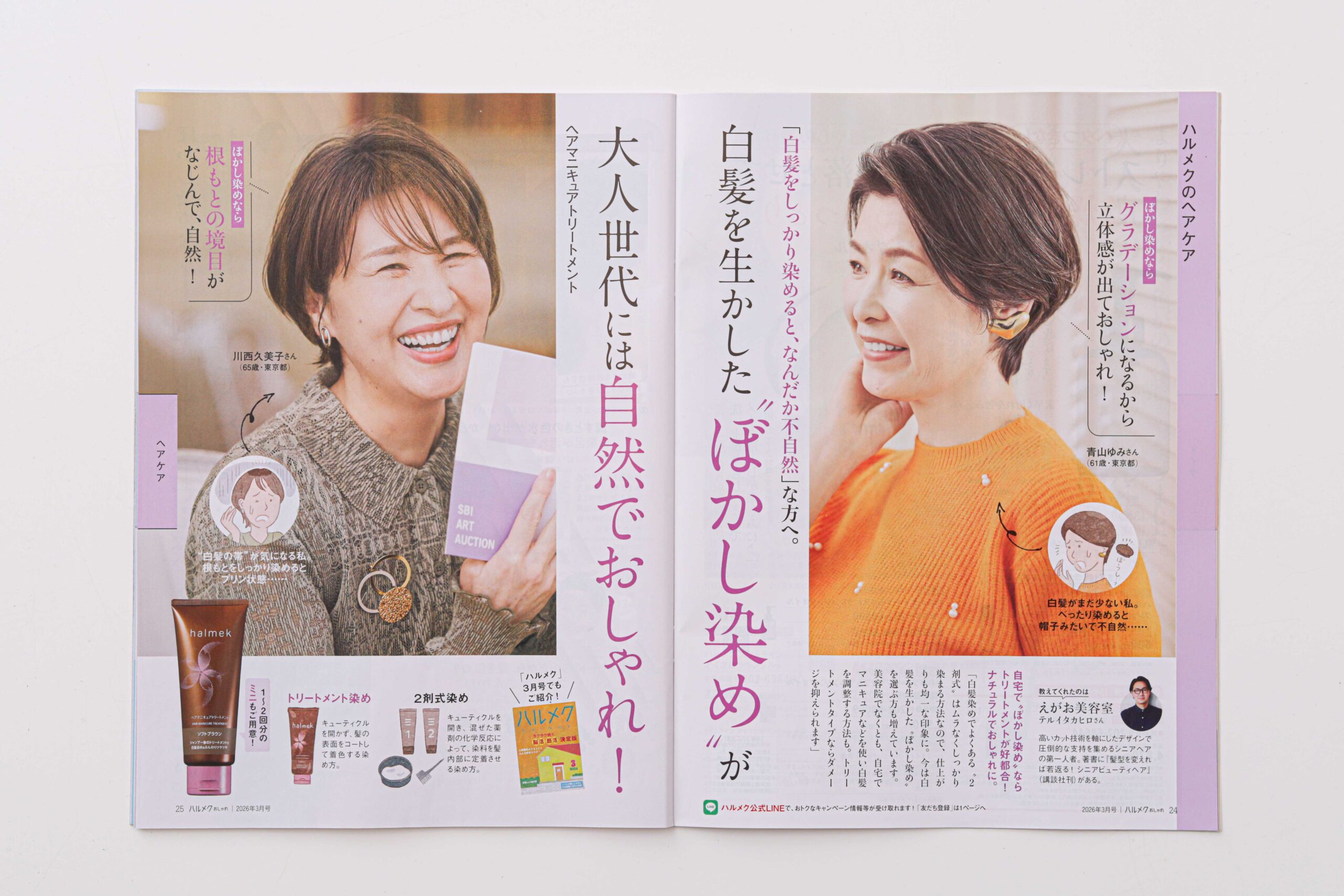 「白髪を生かしたぼかし染めが大人世代には自然でおしゃれ!」にて、美容師のテルイタカヒロ(えがお美容室)が、記事監修をしました。