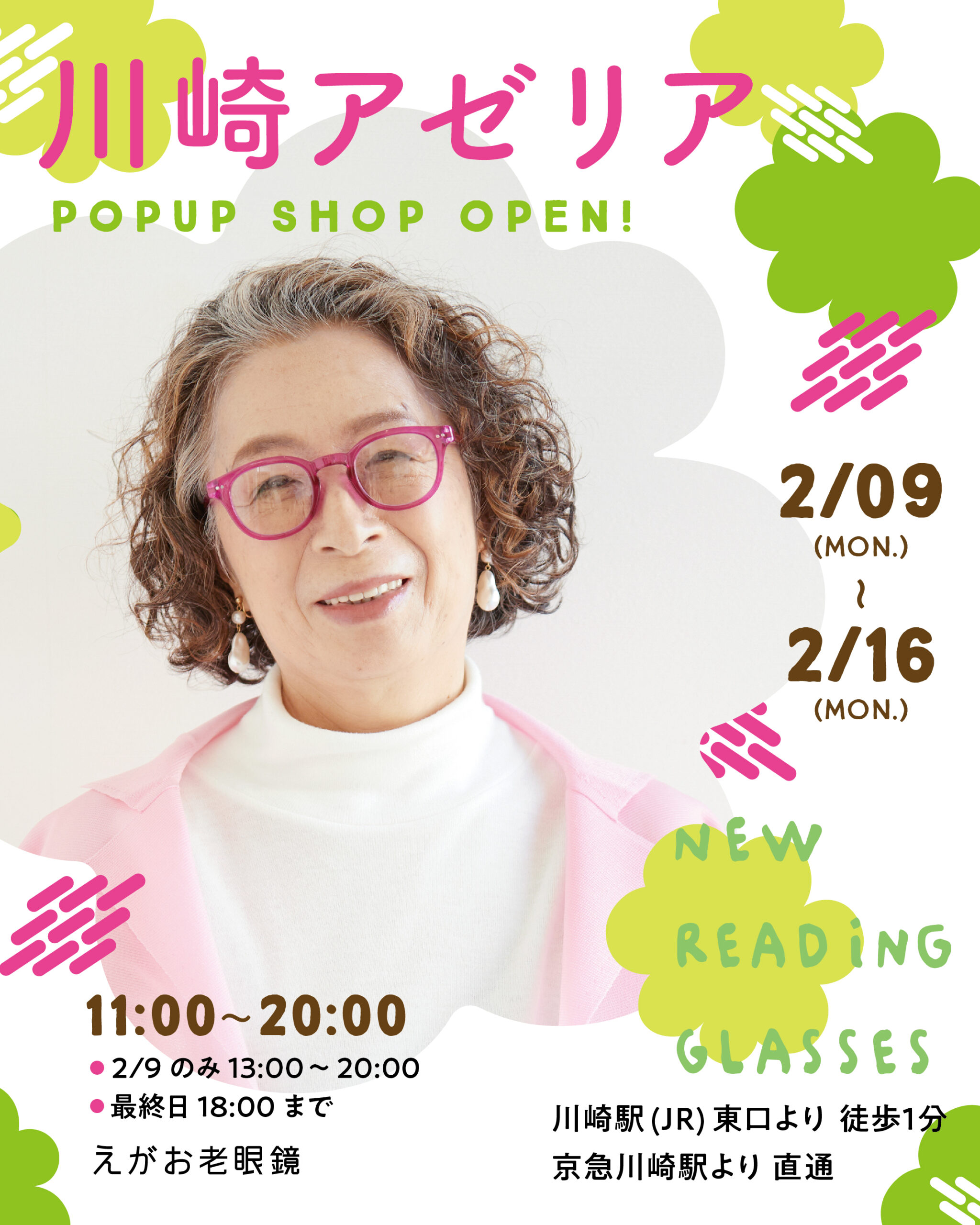 川崎アゼリア 東広場にて、老眼鏡のセレクトショップ『えがお老眼鏡』のPOP UPショップをオープンいたします。